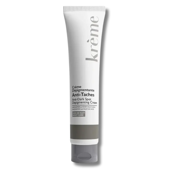 La crème dépigmentante Krème associe la niacinamide, reconnue pour son action unifiante et apaisante, à l’acide salicylique, un actif exfoliant doux qui aide à désincruster les pores et à accélérer le renouvellement cellulaire. Ensemble, ils contribuent à atténuer les taches, lisser le grain de peau et révéler un teint plus lumineux.