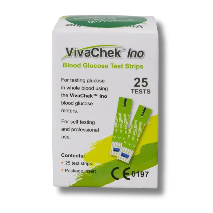 Les VivaChek Ino Bandelettes sont spécialement conçues pour être utilisées avec le lecteur de glycémie VivaChek Ino, permettant une mesure rapide et fiable du taux de glucose dans le sang.